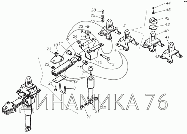 Перечень комплектующих от Установка задней подвески на 53228, 65111