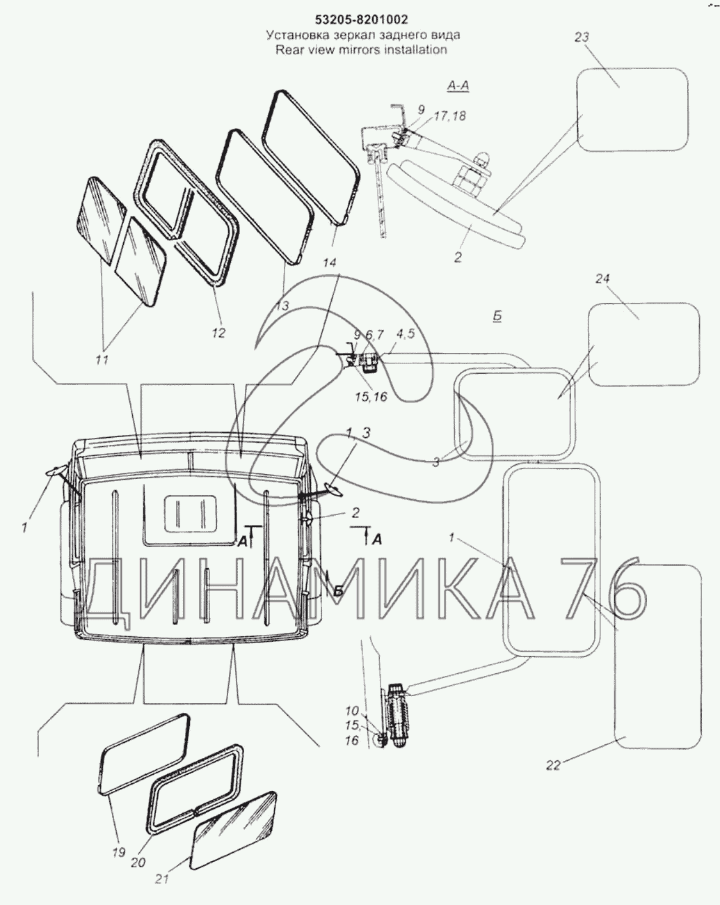 Перечень комплектующих от Установка зеркал заднего вида на 53228, 65111