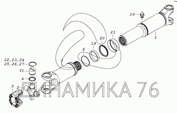 Перечень комплектующих от Вал карданный переднего моста на 53228, 65111