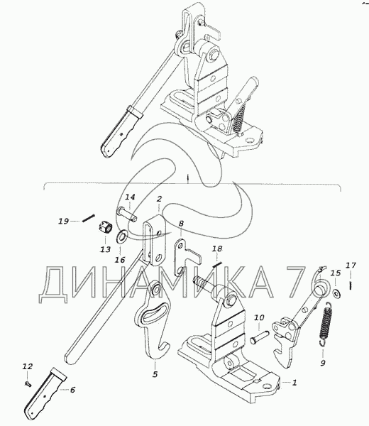 Перечень комплектующих от Запор кабины правый на 53228, 65111