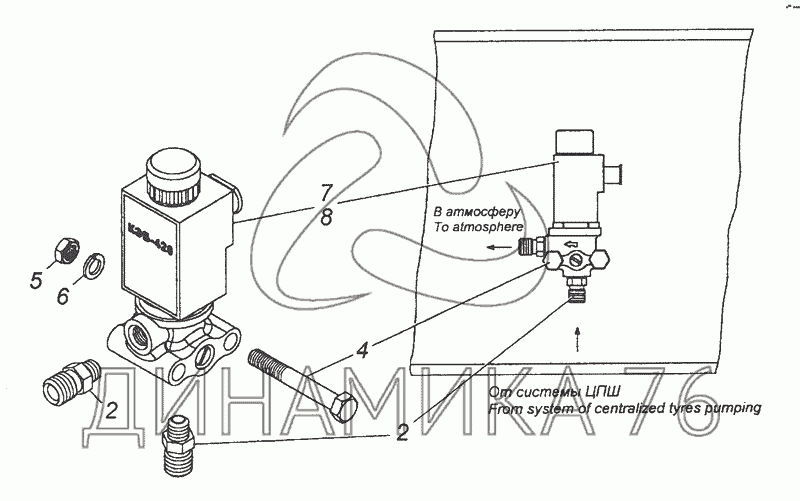 43118-3125015 Установка электромагнитного клапана на 53501 (6х6) (до 2007 г.)