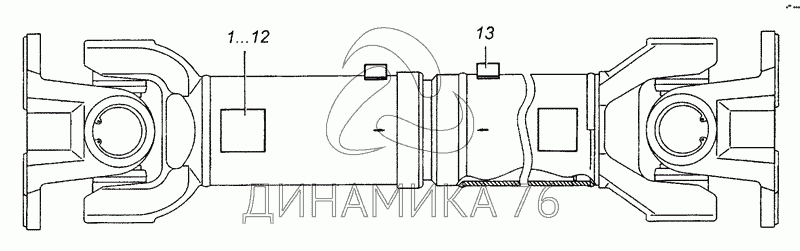 Перечень комплектующих от 63501-2206011 Вал карданный среднего моста в сборе (сварка) на 53501 (6х6)