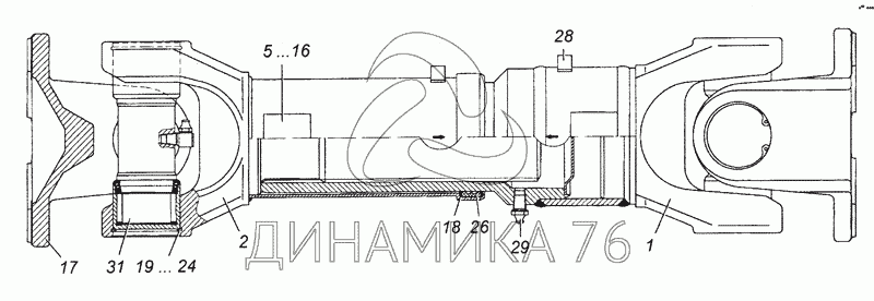 Перечень комплектующих от 6350-2205011-10 Вал карданный среднего моста в сборе (сварка) на 53504 (6х6)
