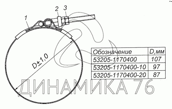 Перечень комплектующих от 53205-1170400 Хомут на 5350 (6х6)