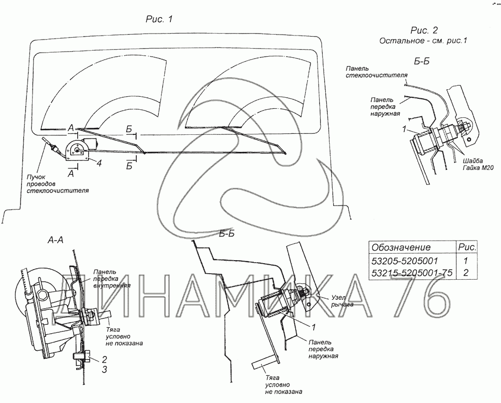 53205-5205001 Установка стеклоочистителя на 5350 (6х6) (до 2004 г.)