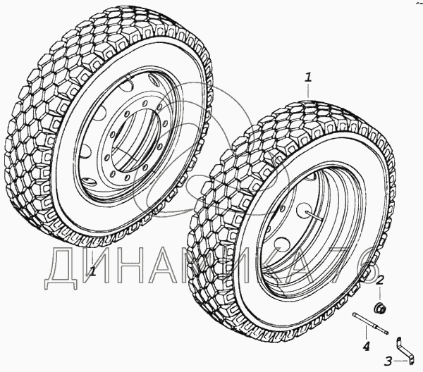 Перечень комплектующих от Установка сдвоенных стальных колес на 5360
