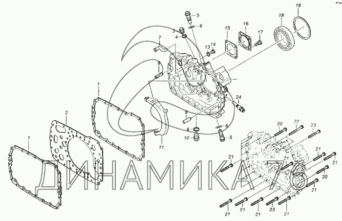 Перечень комплектующих от Установка задней крышки картера на 5360