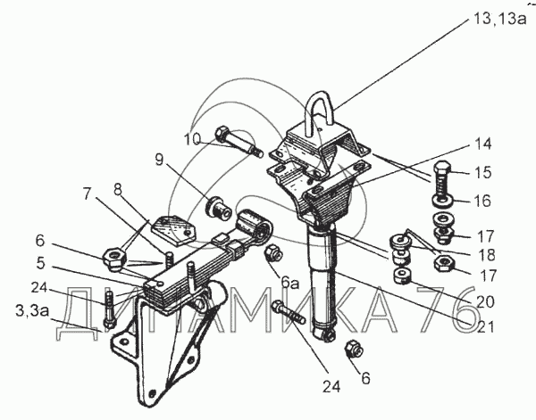 Перечень комплектующих от Установка задней подвески кабины на 5360