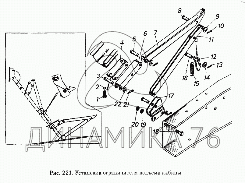 Схемы запчастей предназначены для справочных целей! Мы продаем не все запчасти от Установка ограничителя подъема кабины на 54112, представленные в этом списке.