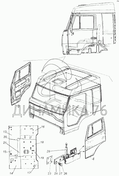 Схемы запчастей предназначены для справочных целей! Мы продаем не все запчасти от Кабина с дверями окрашенная на 5460, представленные в этом списке.