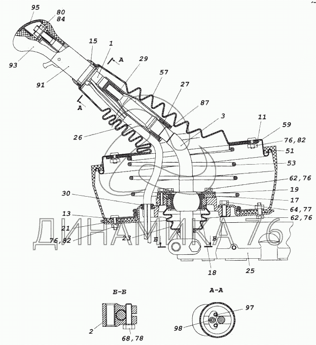 Перечень комплектующих от Опора рычага переключения передач на 5460