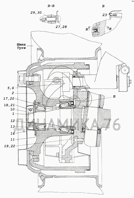 Ступица переднего колеса с барабаном, подшипником и манжетой