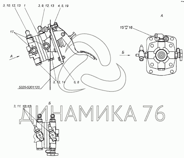 Перечень комплектующих от Установка двухсекционного тормозного крана на 5460