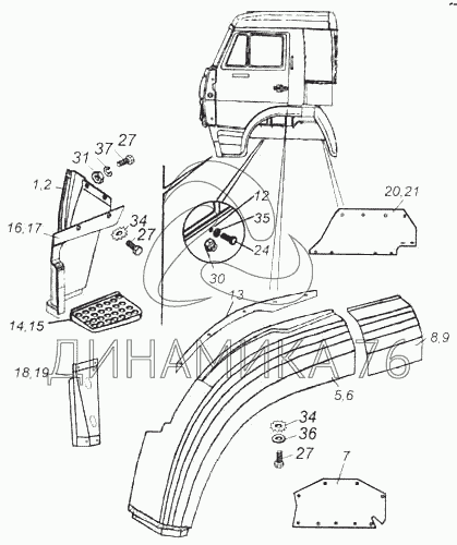 Перечень комплектующих от Установка оперения кабины на 5460