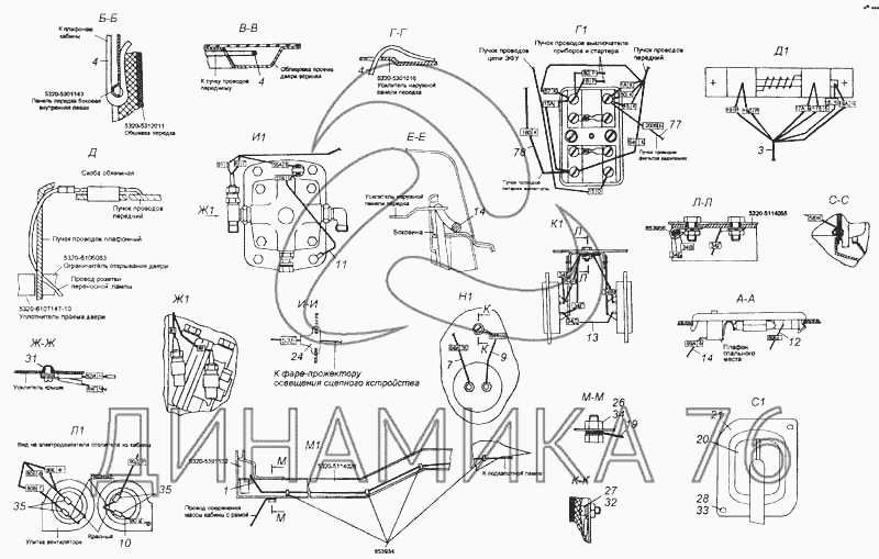 Перечень комплектующих от Установка проводов на кабине на 5460