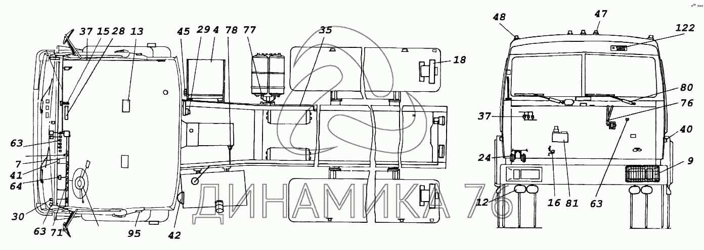 Электрооборудование. Расположение на автомобиле на 5460 (до 2005 г.)
