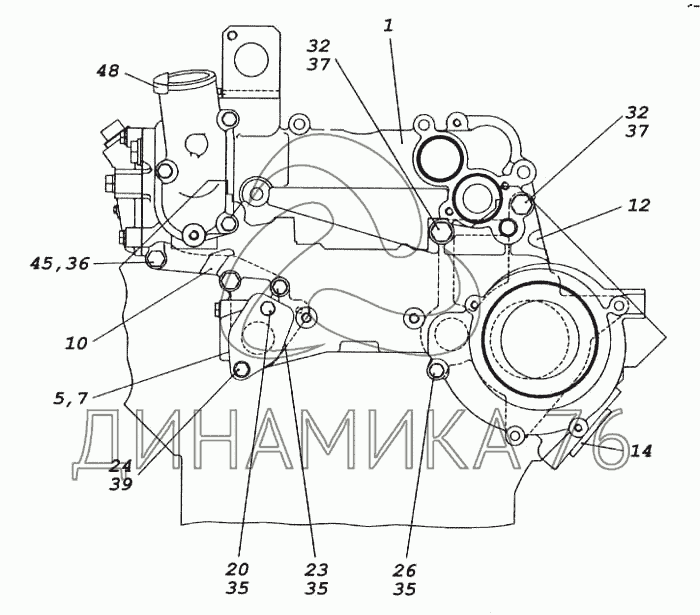Перечень комплектующих от Установка корпуса водяных каналов на 5460