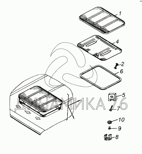 Перечень комплектующих от Установка вентиляционного люка крыши на 5460