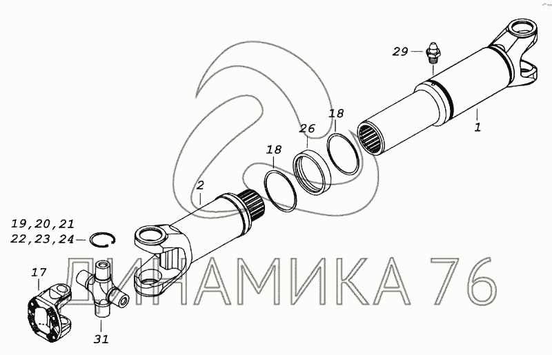 Перечень комплектующих от Вал карданный заднего моста на 5460