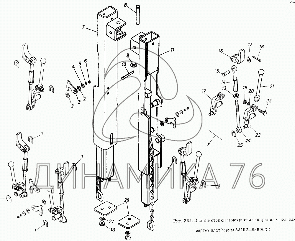 Задние стойки и механизм запирания основных бортов платформы 55102-8500032 — 5511: