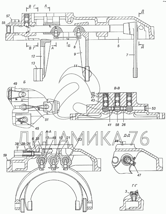 161.1702010 Механизм переключения передач в сборе — 6350 (8х8):