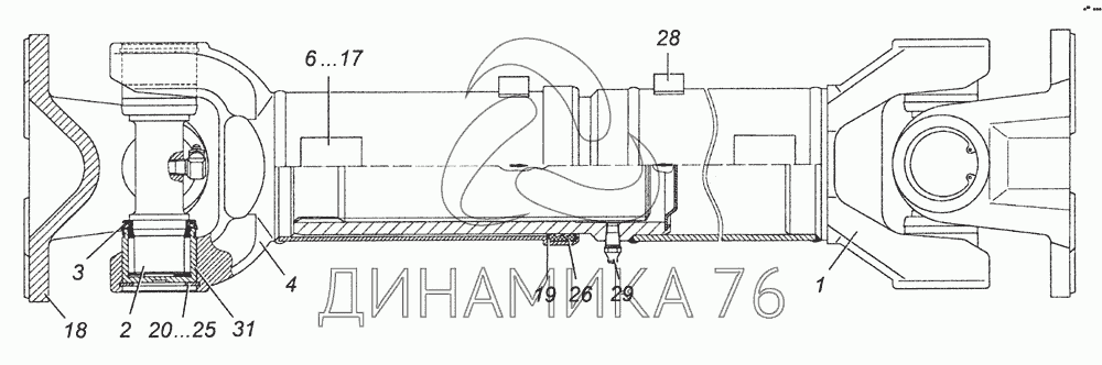Перечень комплектующих от 4326-2201011-10 Вал карданный заднего моста в сборе на 6350 (8х8)