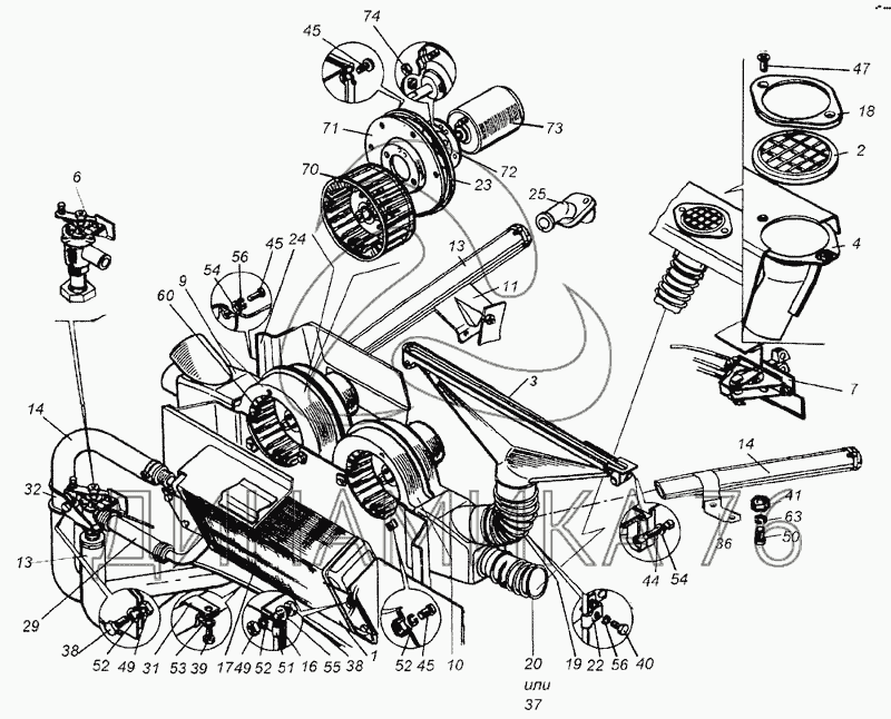 Перечень комплектующих от Элементы отопления и вентиляции кабины на 6460