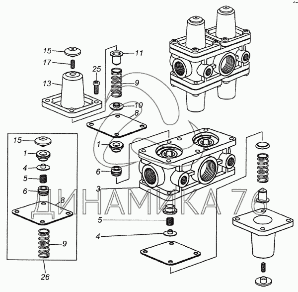 Схемы запчастей предназначены для справочных целей! Мы продаем не все запчасти от Клапан защитный четырехконтурный на 6460, представленные в этом списке.