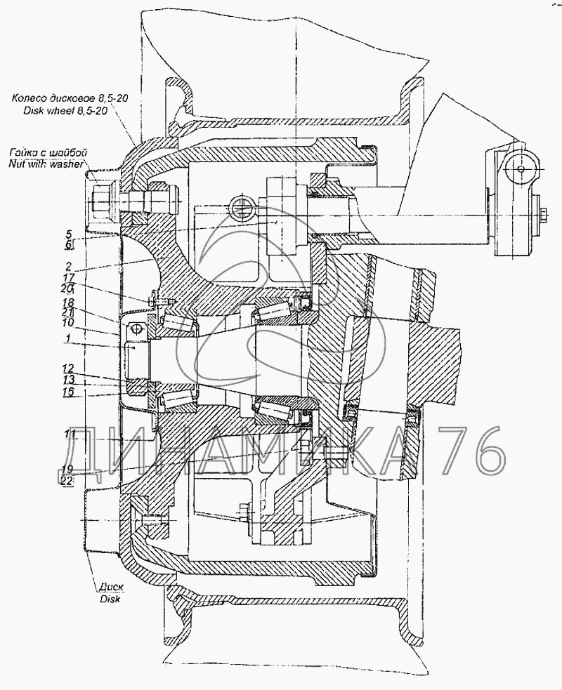 Ступица переднего колеса с барабаном, подшипником и манжетой