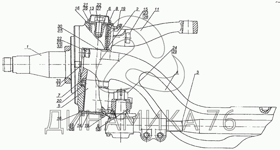 Перечень комплектующих от Ось передняя в сборе на 6460