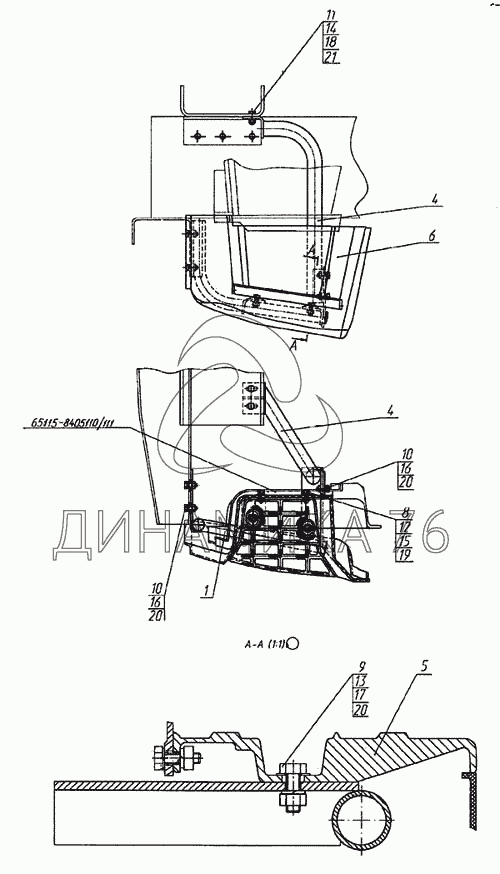 Перечень комплектующих от Установка нижней подножки правая/левая на 6460