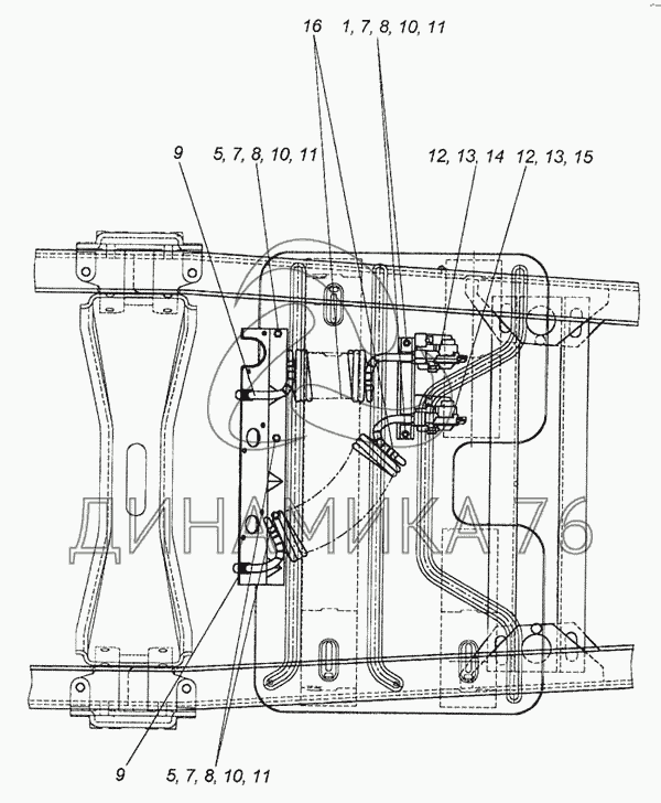 Перечень комплектующих от Установка пневмовыводов к полуприцепу на 6460