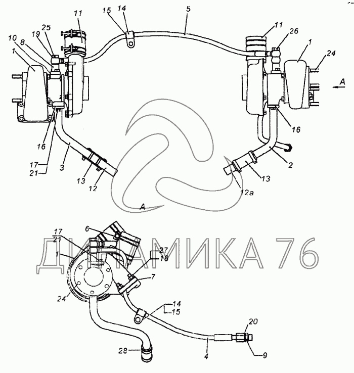 Перечень комплектующих от Установка турбокомпрессора на 6460
