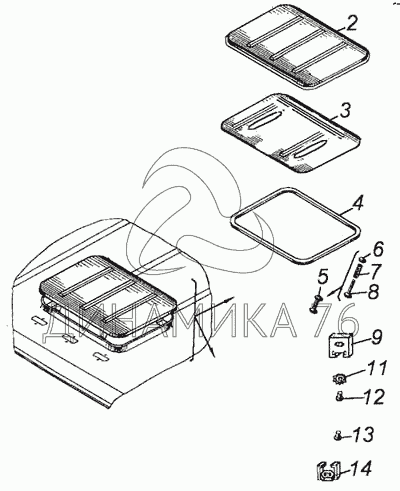 Перечень комплектующих от Установка вентиляционного люка крыши на 6460