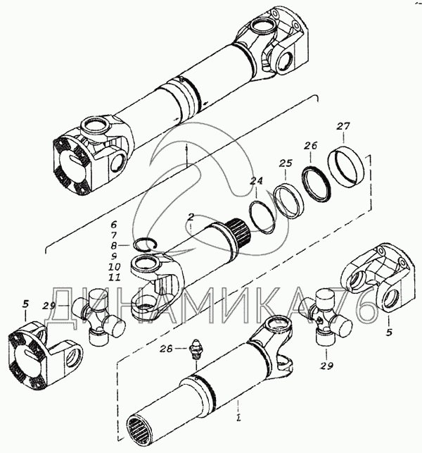 Перечень комплектующих от Вал карданный среднего моста на 6460