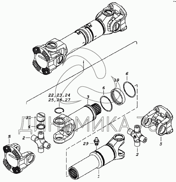Перечень комплектующих от Вал карданный заднего моста на 6460