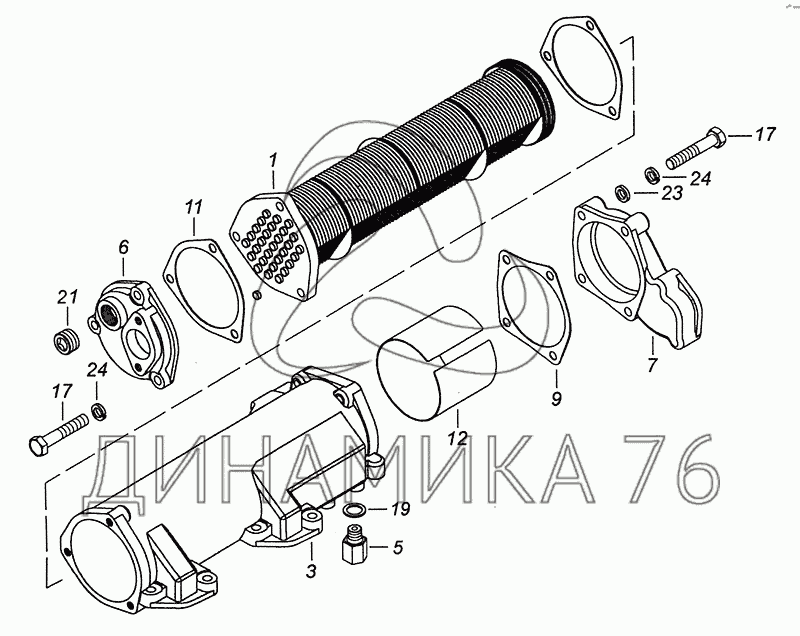 Перечень комплектующих от 740.60-1013200 Теплообменник масляный на 6460 (Евро 3, 4)