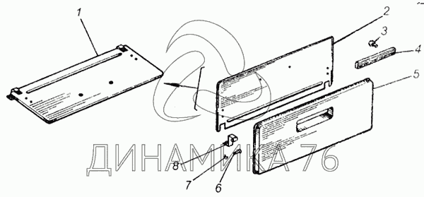 Перечень комплектующих от Дверка вещевого ящика на 65115