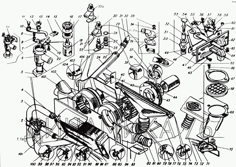 Перечень комплектующих от Элементы отопления и вентиляции кабины на 65115