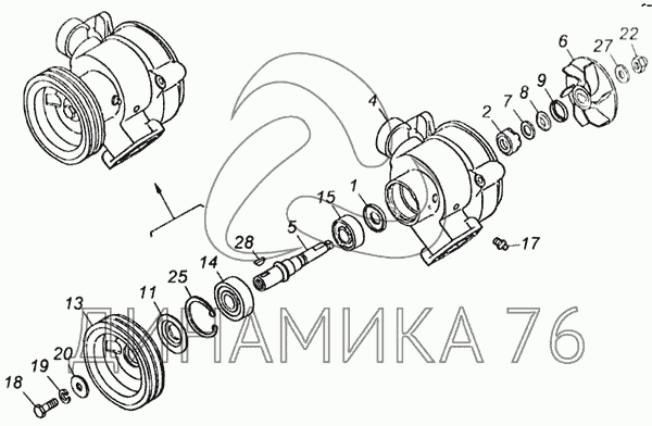 Перечень комплектующих от Насос водяной в сборе на 65115