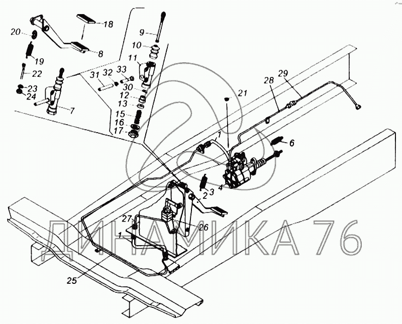 Педаль сцепления с кронштейном и главным цилиндром в сборе