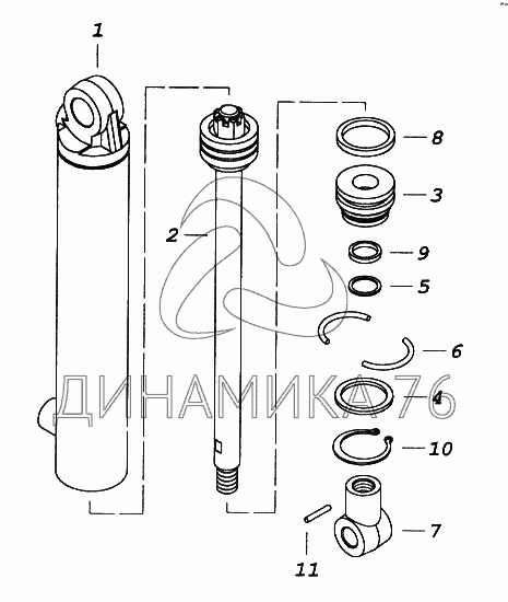 Перечень комплектующих от Гидроцилиндр на 65116