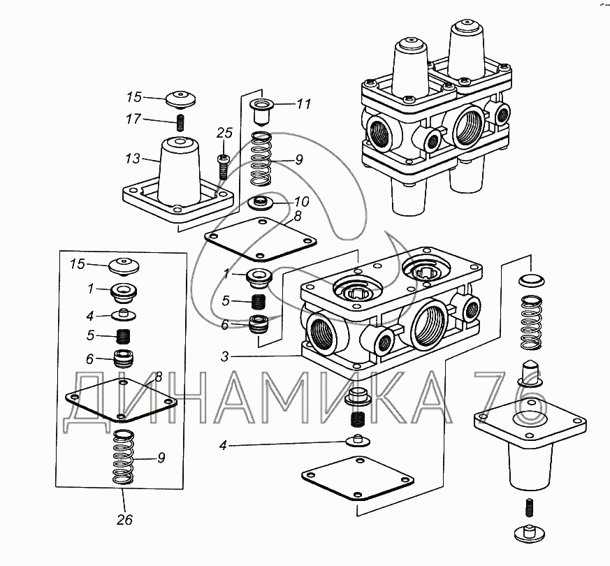 Клапан защитный четырехконтурный на 65116 (до 2006 г.)