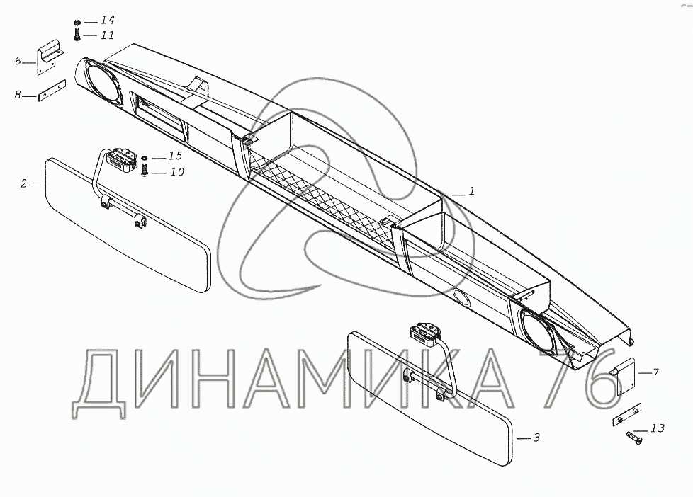 Перечень комплектующих от Надоконной полки и противосолнечных козырьков на 65116