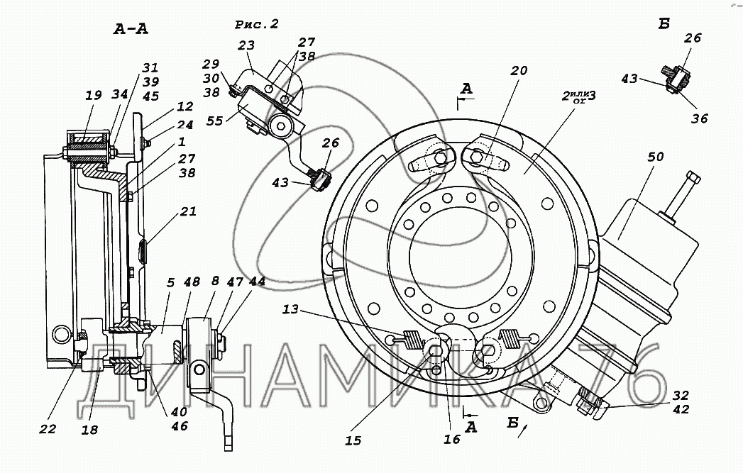 Кронштейн тормозной камеры и разжимного кулака тормоза левый в сборе