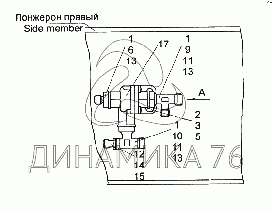 Перечень комплектующих от Установка двухмагистрального клапана на 65116
