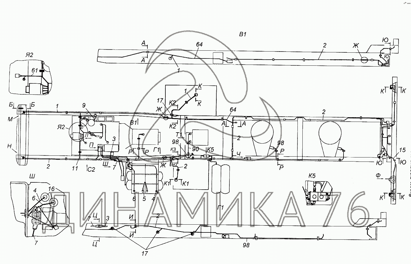 Установка проводов на шасси на 65116 (до 2006 г.)