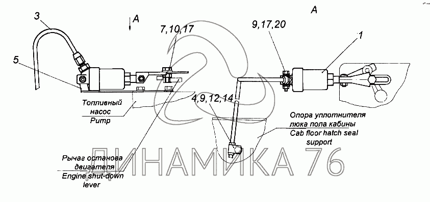 Перечень комплектующих от Установка цилиндра выключения подачи топлива на 65116