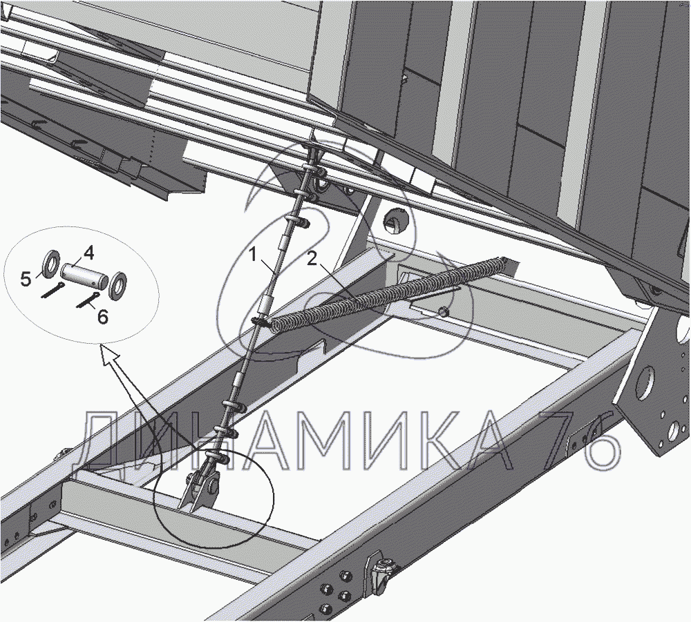 Перечень комплектующих от Установка троса ограничителя платформы на 65201