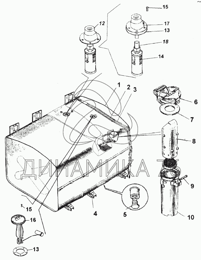Перечень комплектующих от Бак топливный на 6520